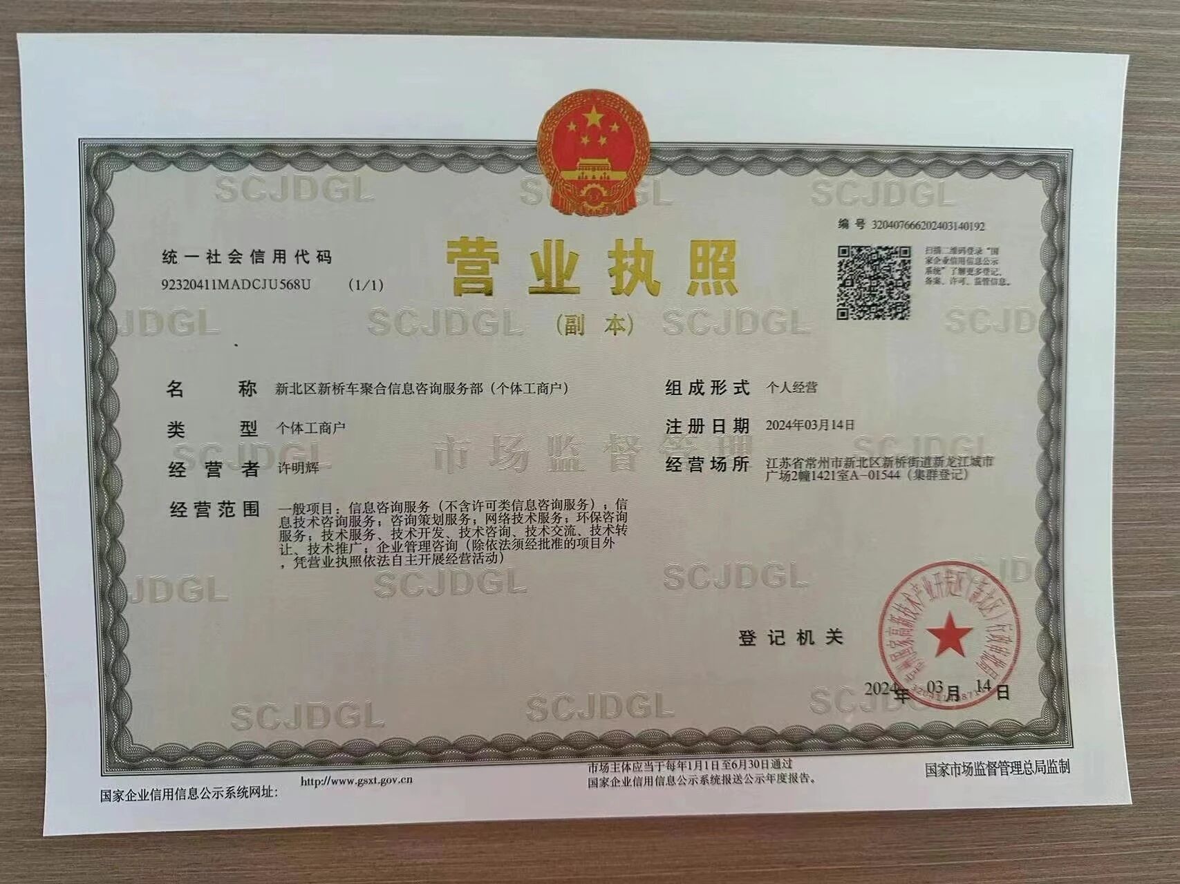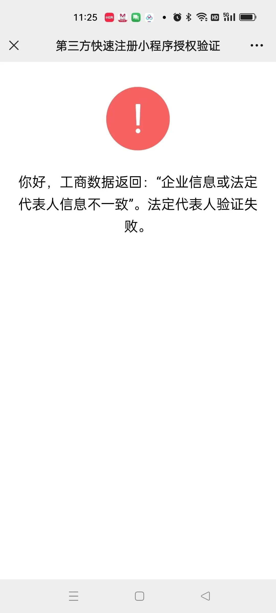 以下微信认证提示:工商数据返回:“企业信息或法定代表人信息不一致”。执照未更过,提示如图所示。请问如何解决? 执照办理时间:2024-3-14 执照名称:新北区新桥车聚合信息咨询服务部(个体工商户) 信用代码:92320411MADCJU568U 法人姓名:许明辉