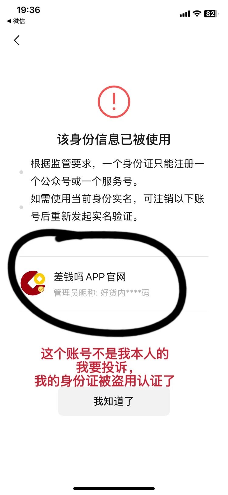 我投诉有人用我身份证认证了公众号,我要注销别人的公众号,我现在自己要认证公众号