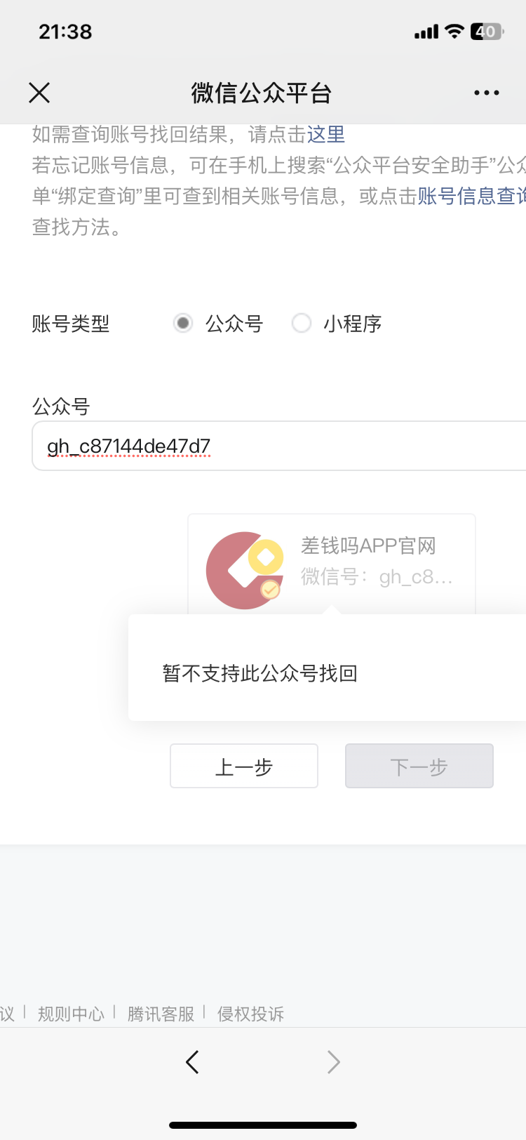 你试着把整个帖子删了,这里千万不要发个人信息,你可能之前就是这样被盗用信息申请公众号了