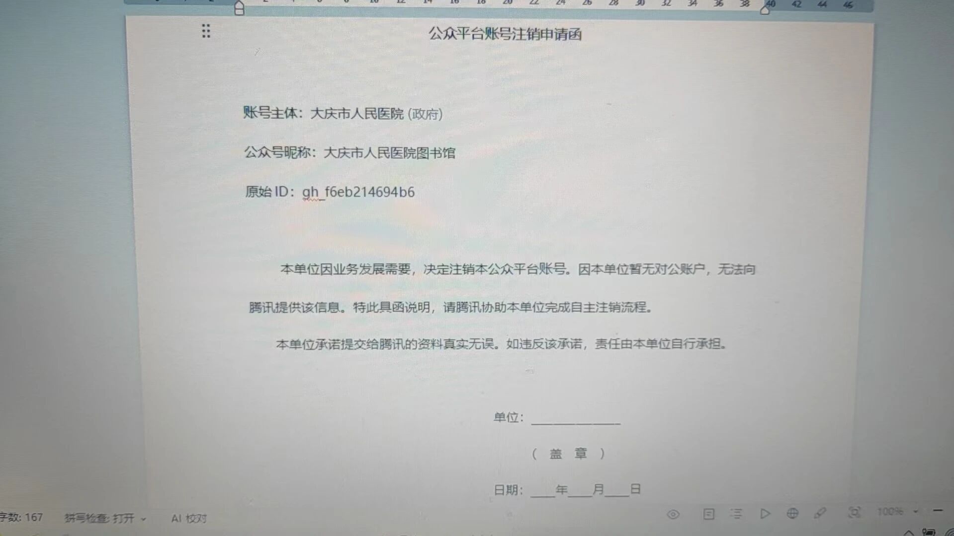 你好,照片显示的注销申请函为官方模板,需提交纸质版加盖主体公章并在对应信息填写与账号后台一致的信息即可。