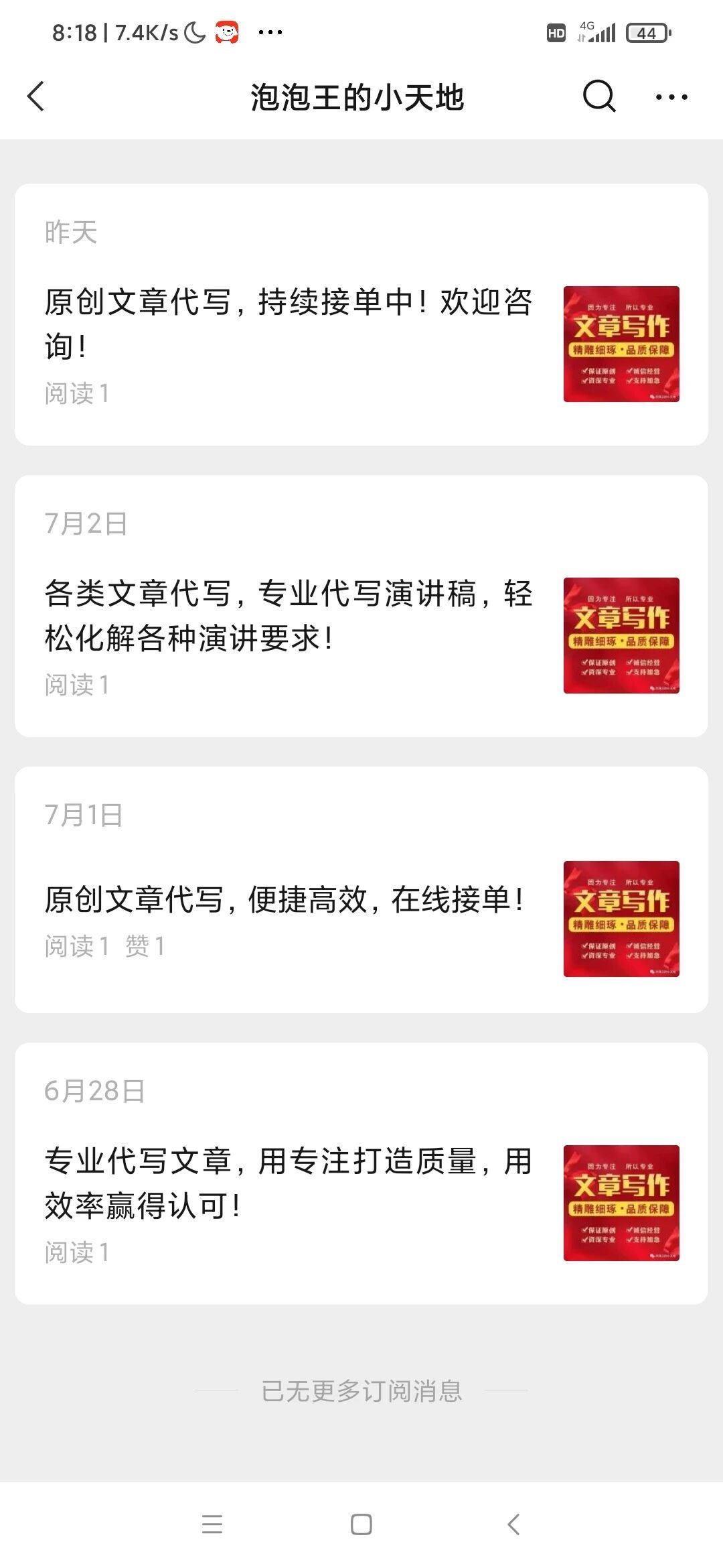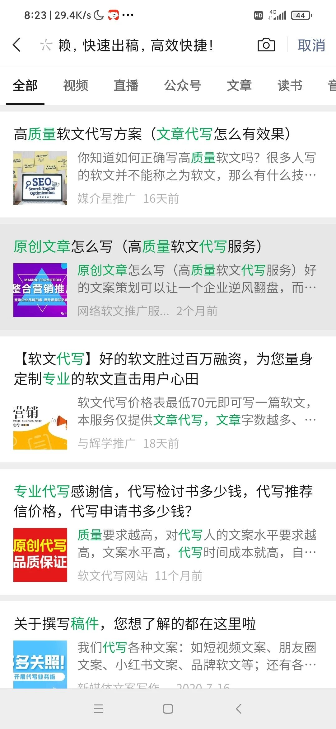 公众号名字:穿着碎花裙的姑凉 文章名字:专业代写文章,原创稿件,质量信赖,快速出稿,高效快捷! 文章链接:https://mp.weixin.qq.com/s/eb8CTDfEBiP_pbxpV1-QGg