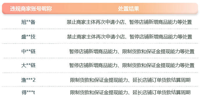 以下是近一周被处置的部分情节严重的商家、带货者名单