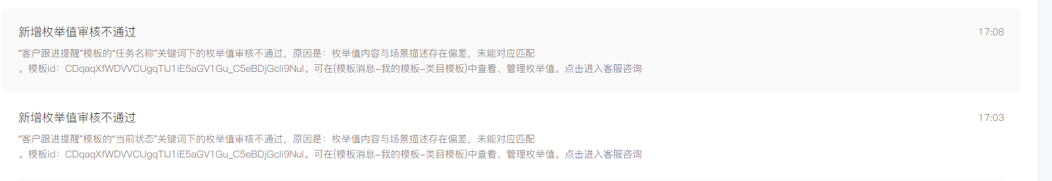 你好,枚举值内容需与模板整体内容匹配相关。该号在关键词“任务名称”下提审新增枚举值,