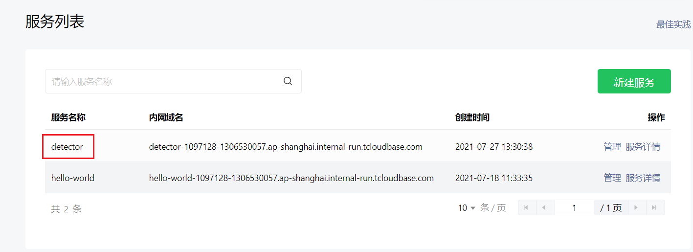 下面确实没有“detector”这个服务名称,请确认是否是填错了envid或者已经删除了服务,envid需要填写微信云托管控制台创建的环境ID。
