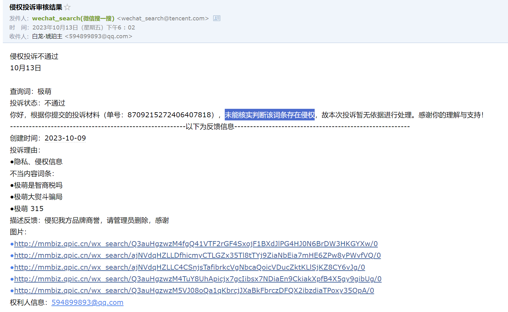 微信搜一搜相关搜索词侵权投诉,反馈:未能核实判断该词条存在侵权,请问怎么才算侵权,投诉需要什么材料?