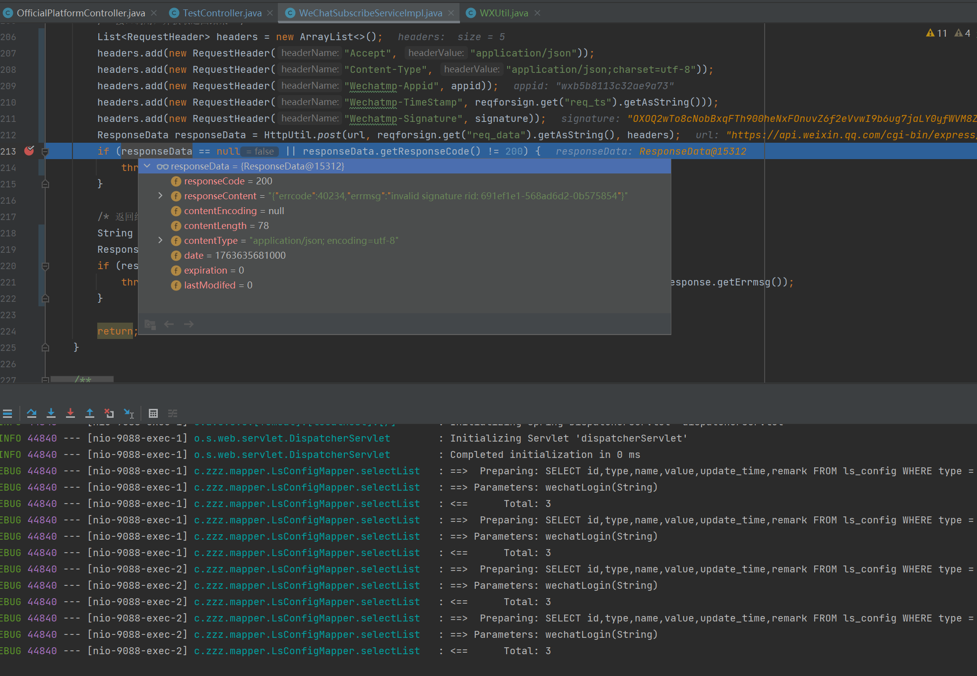 服务端api签名指南:https://developers.weixin.qq.com/miniprogram/dev/OpenApiDoc/getting_started/api_signature.html#%E7%AD%BE%E5%90%8D做的,只是改了相关参数,没有改其他代码,但是依然报错“无效签名”。