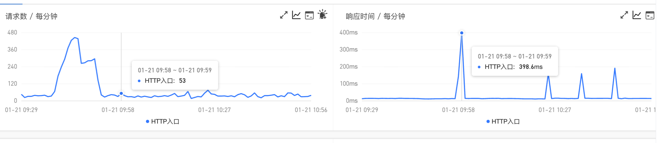 我们有个node服务,是运行next项目,最近我们发现一些问题,每次服务在扩容的时候,源站服务非常卡,直接访问不了了,比如下面的,10.10分左右在扩展,这时候的服务响应时间直接变长,用户反馈访问不了网站。