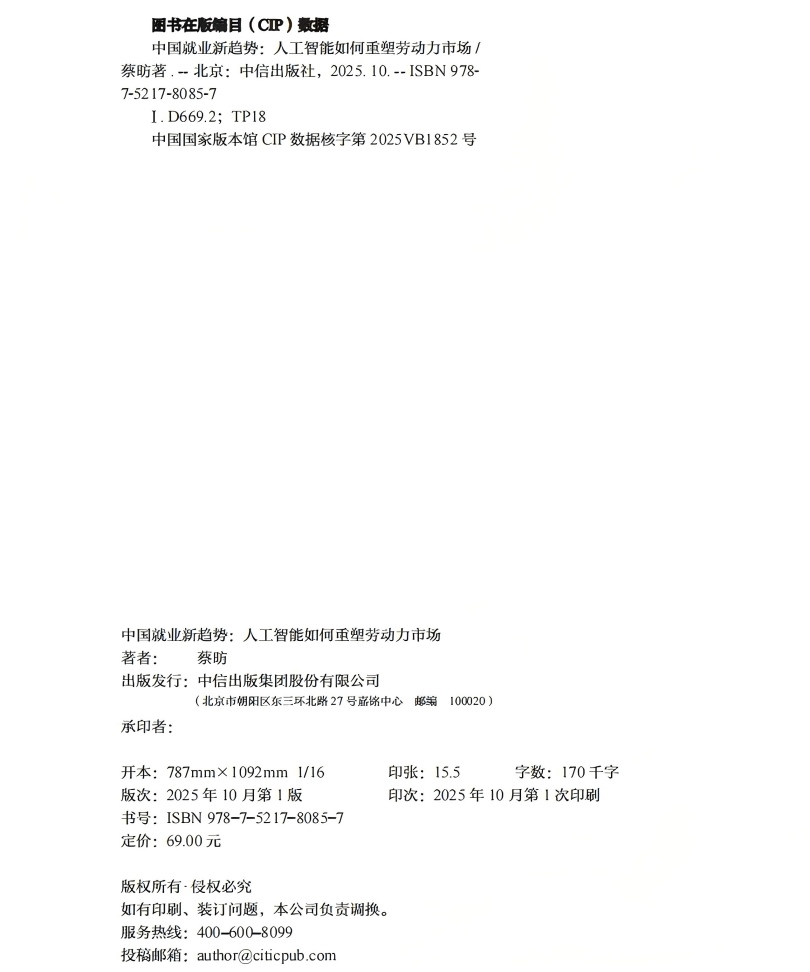 国就业新趋势 : 人工智能如何重塑劳动力市场"},{"attr_key":"是否为单一书号丛书","attr_value":"是"},{"attr_key":"图书册数","attr_value":"1册"}],"s