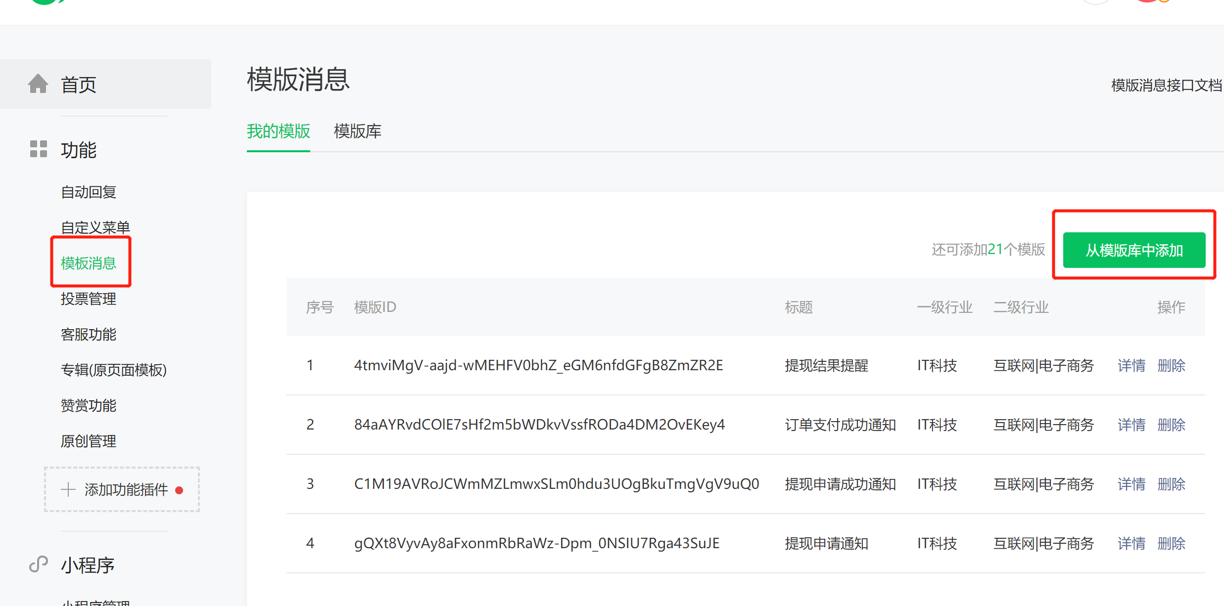 关注了服务号,服务号主动发送这种消息通知(红线处)。请问这种通知是属于服务号里的什么功能,在开发文档里属于哪一块?有没有开发文档的地址