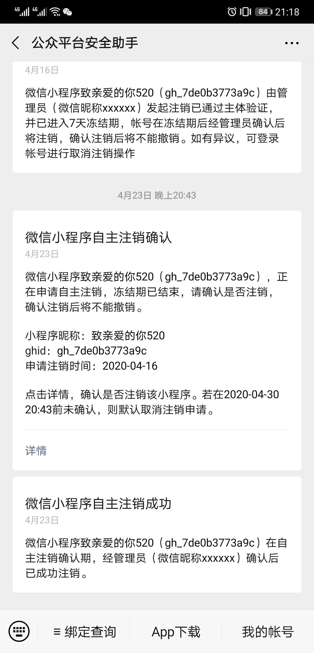 微信公众号小程序已注销,但是资源未释放,请帮忙核实一下,谢谢!