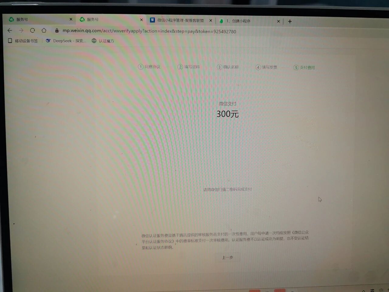 微信公众号认证,到付款300页面一直出不来付款二维码,换了好几个浏览器,切换流量或者无线,或者手机浏览器操作也是同样的问题 到了微信支付300页面,但是不出来二维码