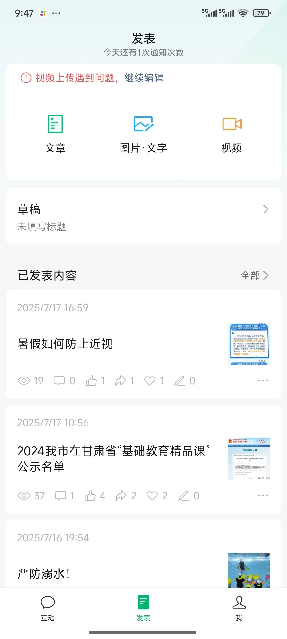 我的公众号自7月5日至今无法上传视频,总是提示链接异常,换了好多视频都是一样,最后显示视频上传遇到问题?无论怎样重新编辑都不能用。亟待解决。