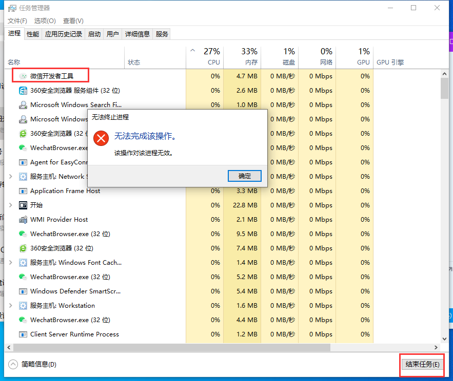 昨天更新了下系统,点击开发工具无界面反应,点击后鼠标在指针状态一直闪烁小圆圈,然后在任务管理器里还关不掉。