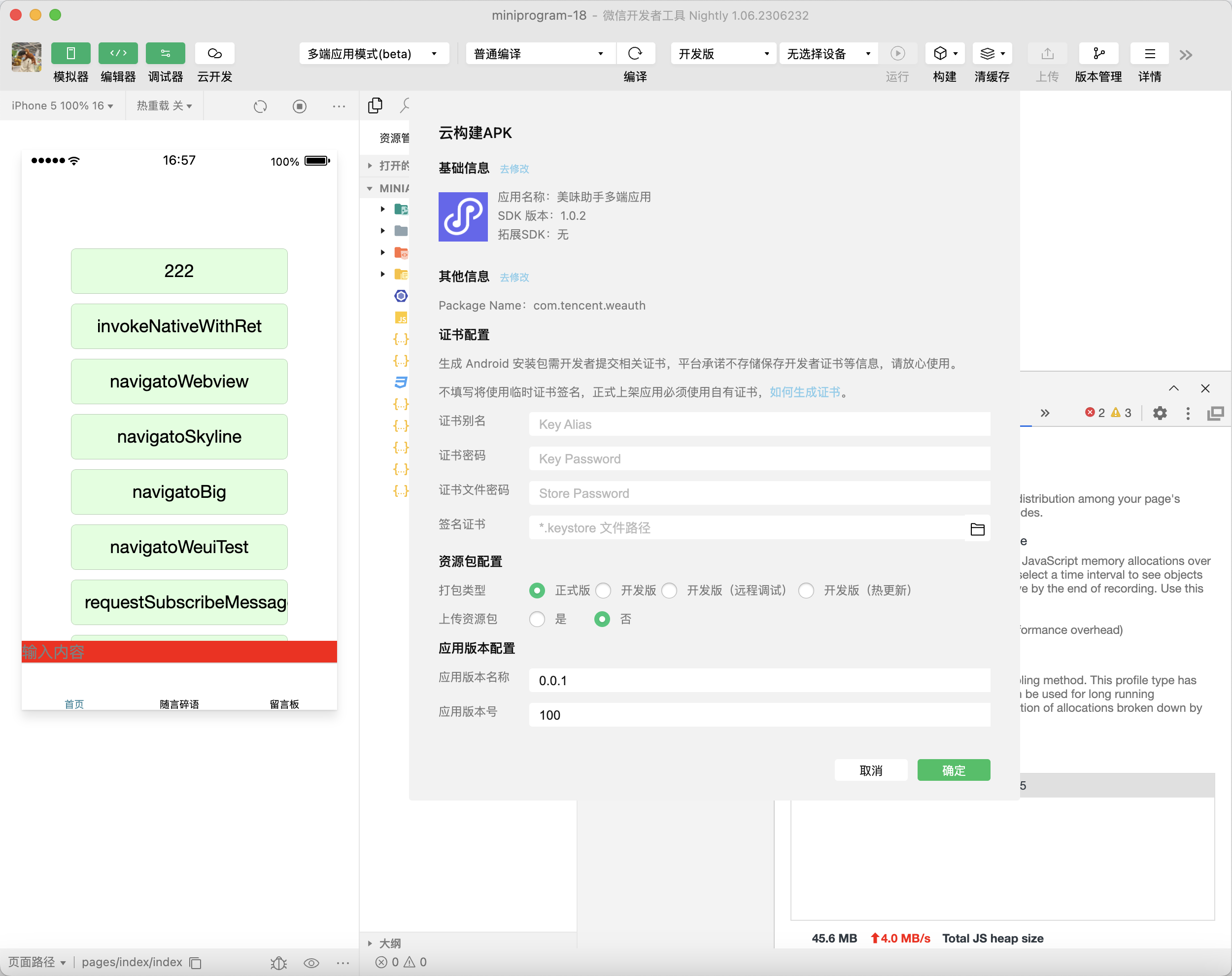 对小程序多端进行了相关能力架构升级,例如支持应用云构建生成、多端模式支持真机调试