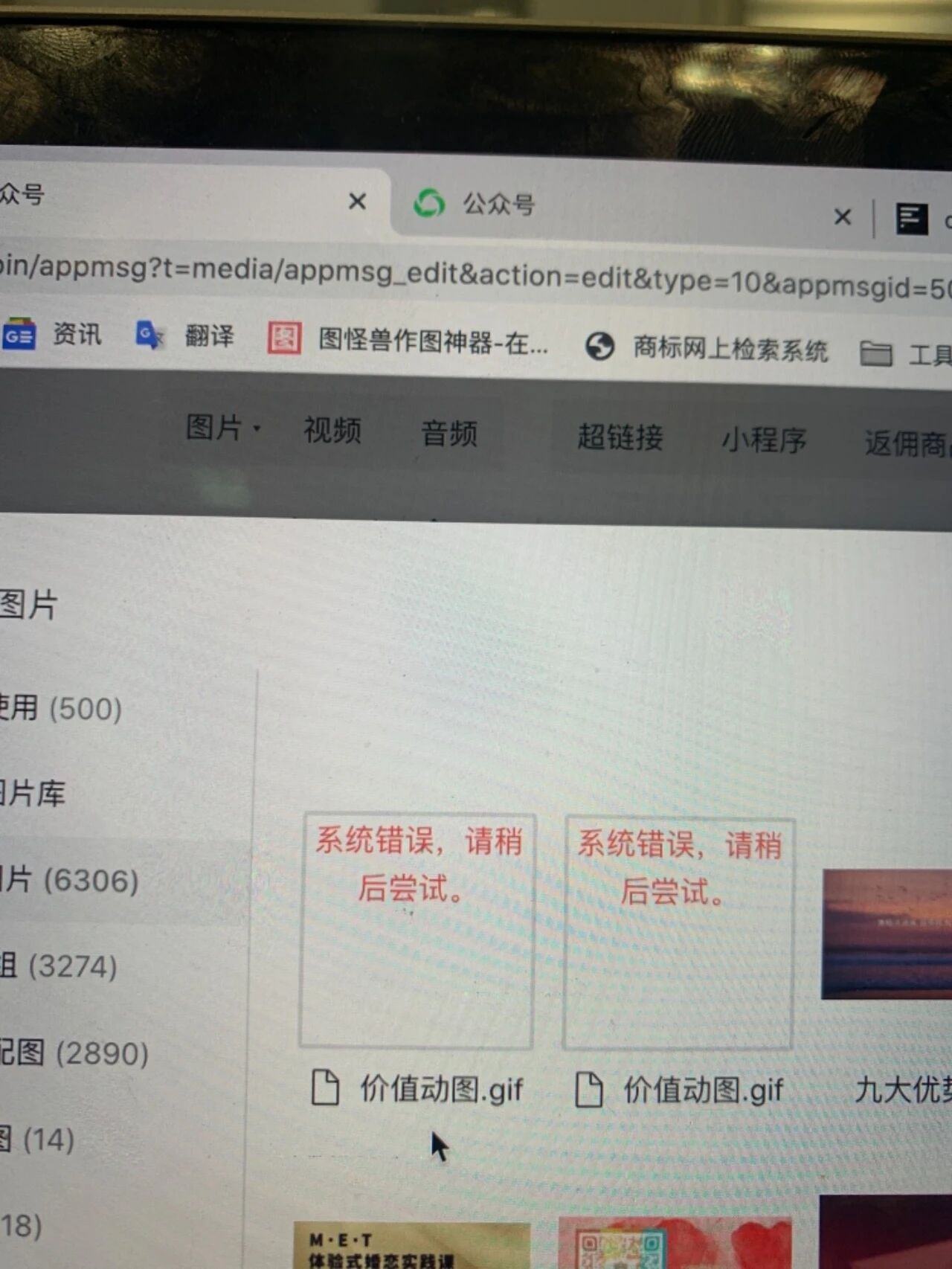 你好,麻烦在这里继续回复;公众号推文上传图片显示系统错误无法上传?