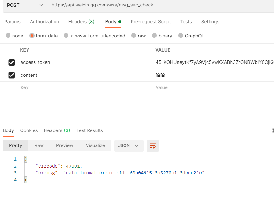你好,显示POST BODY数据格式错误,请求参数请采用JSON格式