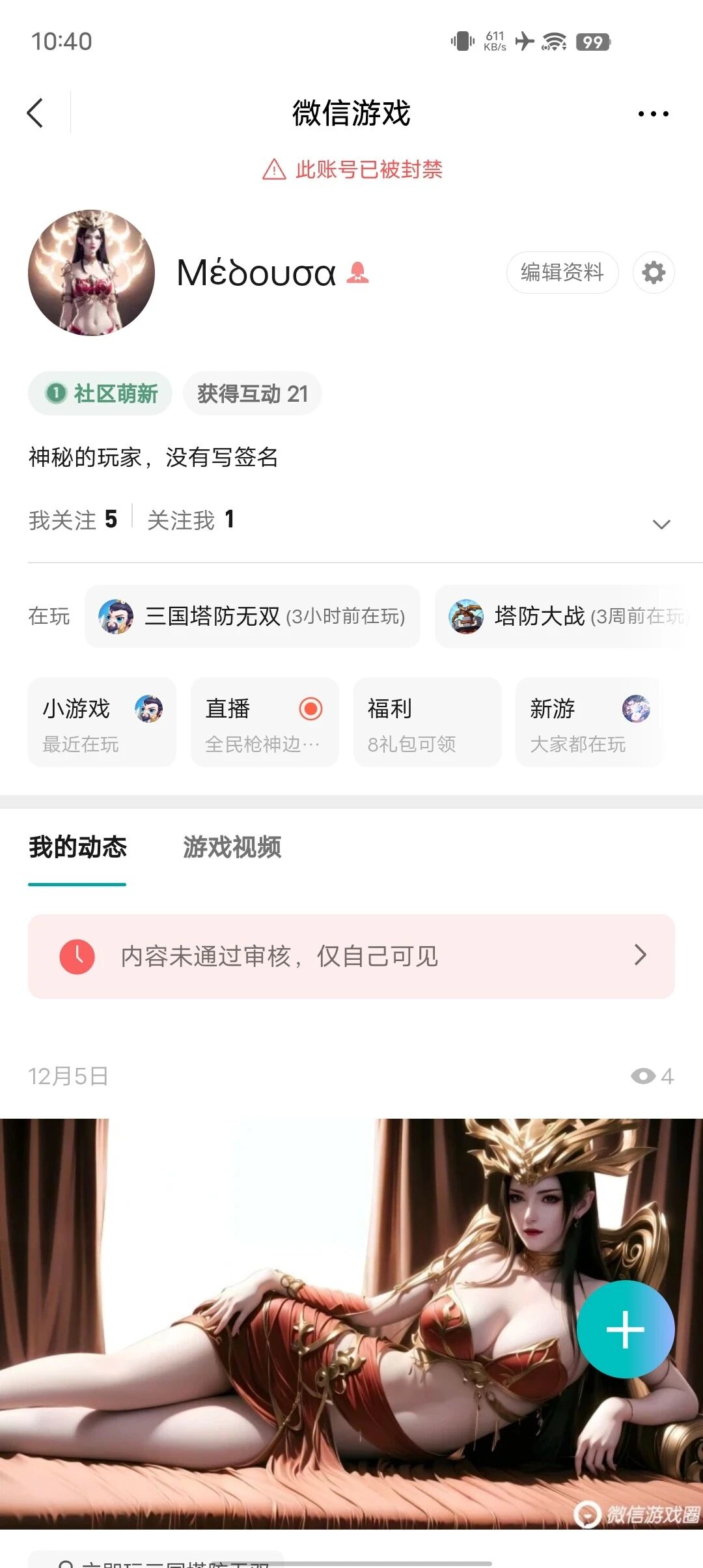 账号封禁问题可以在:游戏圈----服务--点击个人游戏圈名片--设置--意见反馈--进行账号申诉。