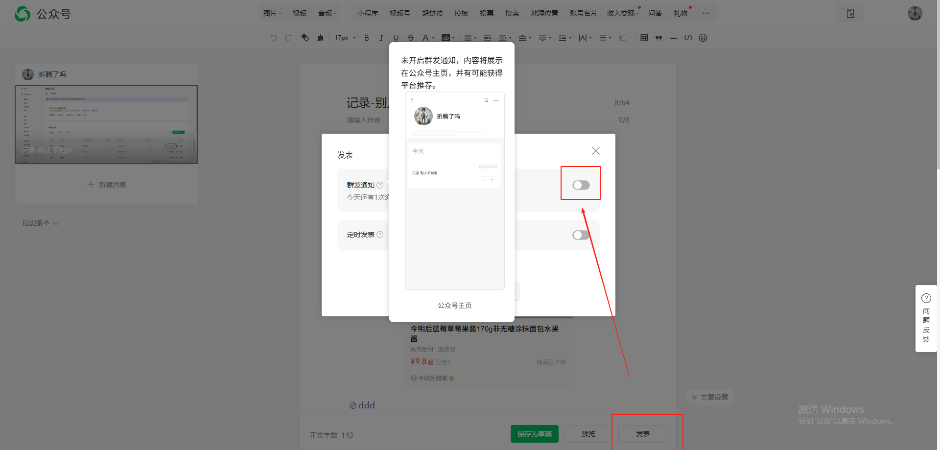 你好,不开启群发通知即可,不会主动推送给用户但会显示在公众号主页,发表次数不限