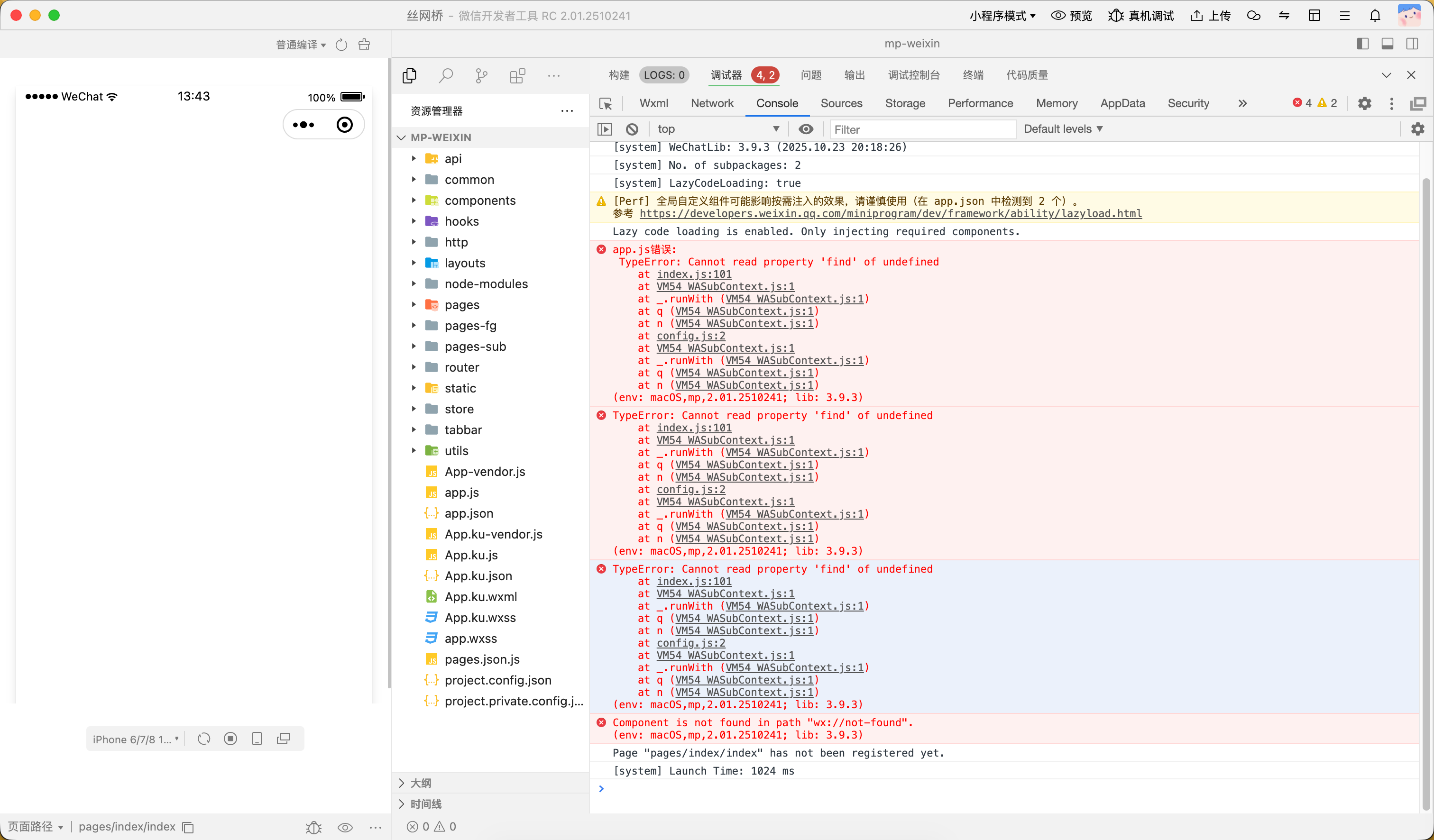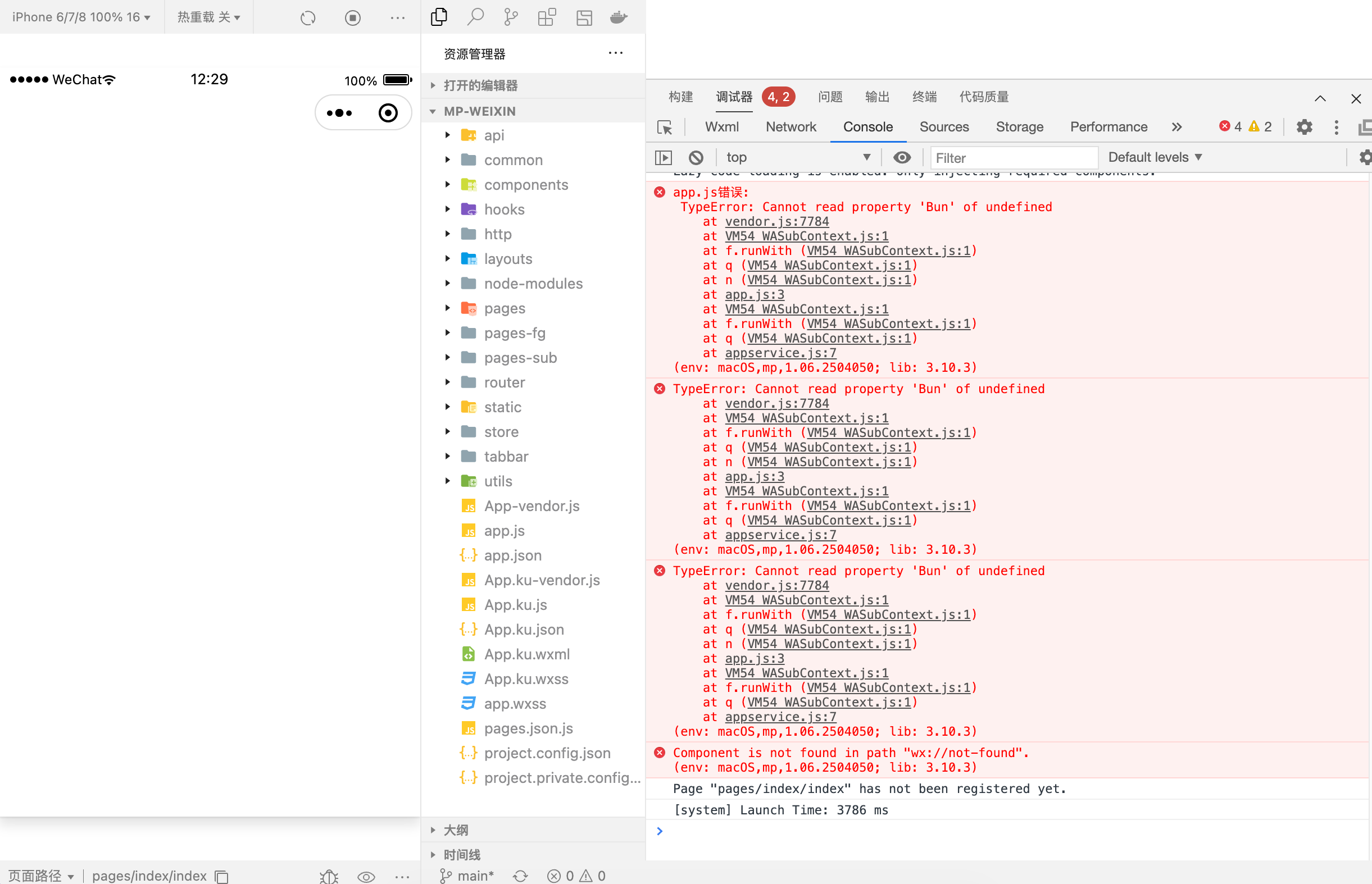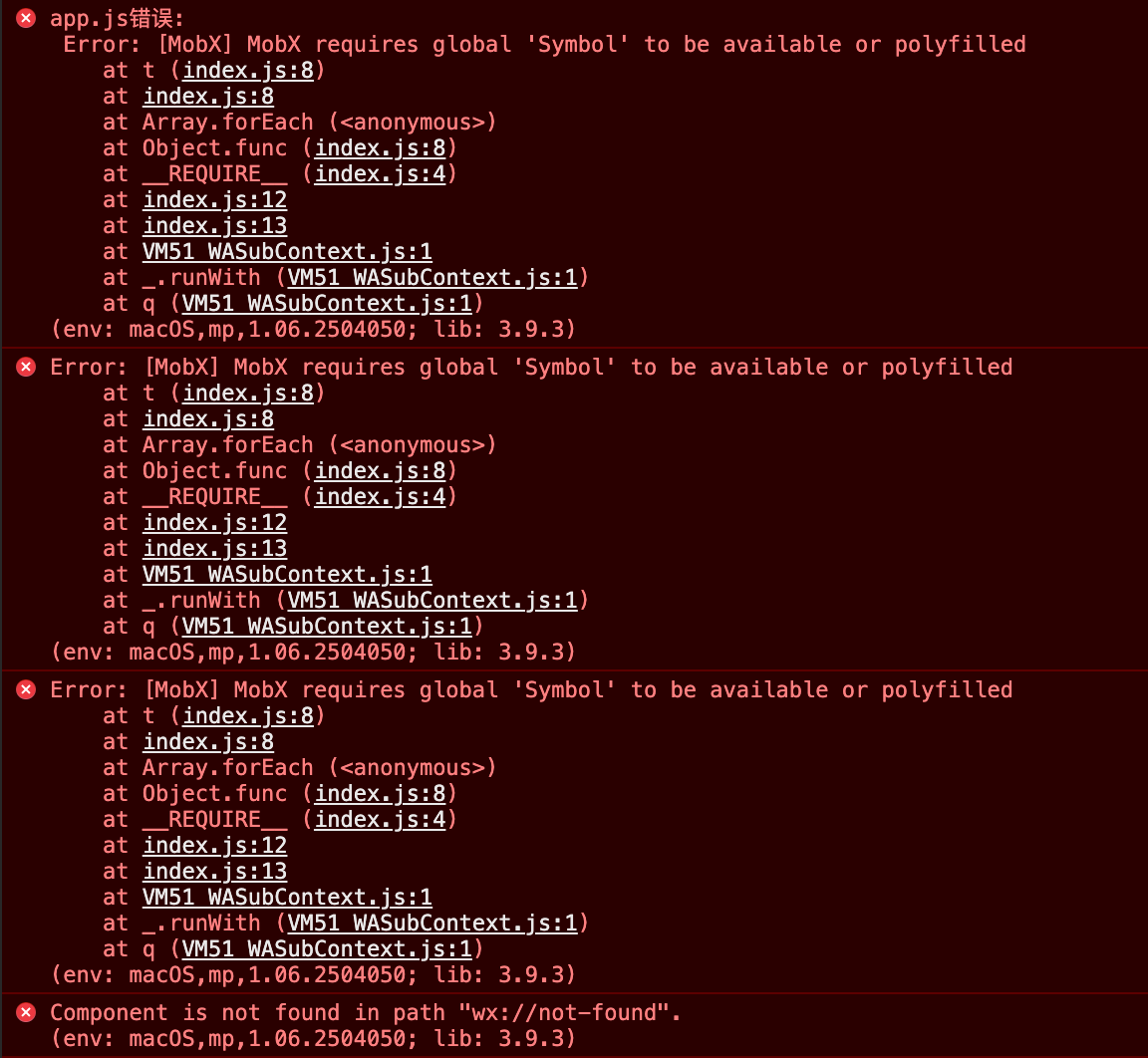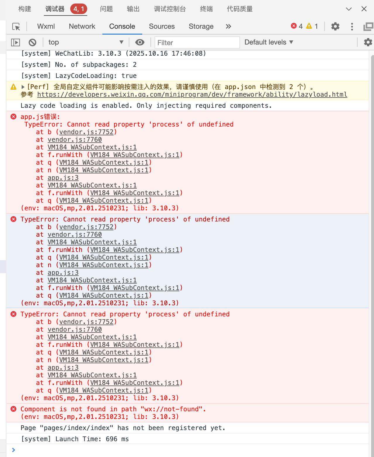 TypeError: Cannot read property 'process' of undefined at b (vendor.js? [sm]:7978) at vendor.js? [sm]:7986 at VM56 WASubContext.js:1 at f.runWith (VM56 WASubContext.js:1) at q (VM56 WASubContext.js:1) at n (VM56 WASubContext.js:1) at app.js? [sm]:3 at VM56 WASubContext.js:1 at f.runWith (VM56 WASubContext.js:1) at q (VM56 WASubContext.js:1)(env: Windows,mp,1.06.2504050; lib: 3.10.3)本来看今天的更新日志修复了很多问题,就更新了,结果一天都是好的,到了现在又坏了 真他妈服了, 一个大厂的程序发布就是这样的吗