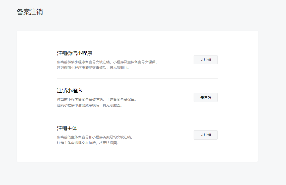 小程序刚从第三方转到政府机构主体单位下,然后提醒小程序备案主体名称信息与小程序主体名称信息不一致,小程序备案信息栏还是第三方公司信息,在小程序备案栏里点变更提示是不允许直接变更主体,要先注销备案,然后重新备案。问一下,我想要在不删除这个小程序,还能正常使用的情况下怎么选择选择注销备案