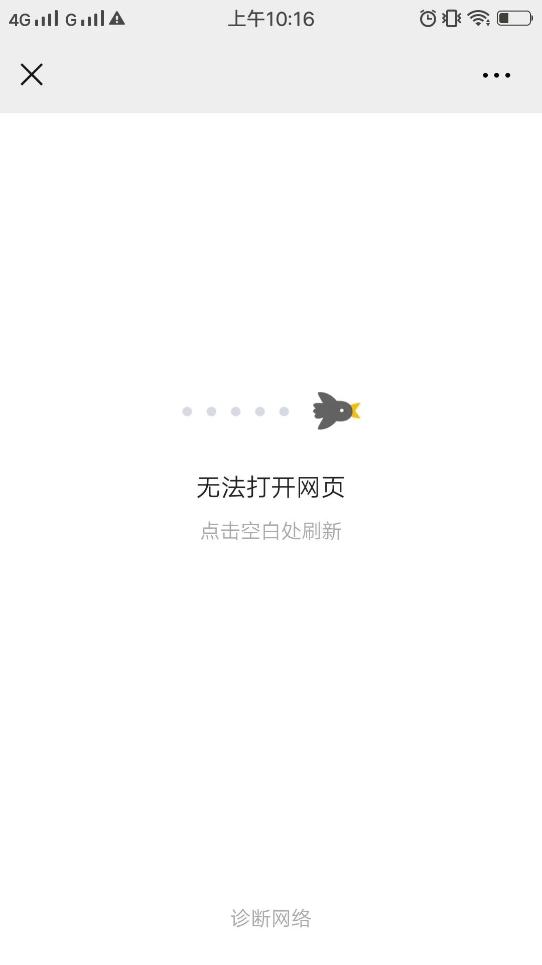 忽然会出现小概率(10%左右)出现无法打开网页情况,此时所有网址公众号都提示无法打开网页.也是在春节期间附近开始出现,之前没有遇到过.如下图: