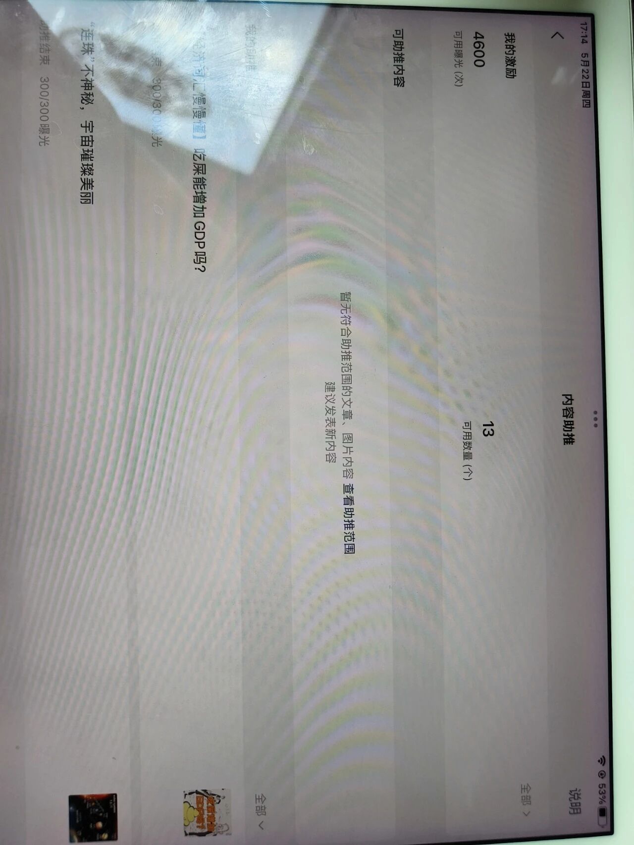 昨晚新发了文章,是讲小满这天的传统天文历法的内容,内容详细有图文,无违规内容,是平台首发,评论转载推荐各项功能正常开启,今天想使用助推,但可使用助推文章列表里没有昨天的文章,想问一下为什么?