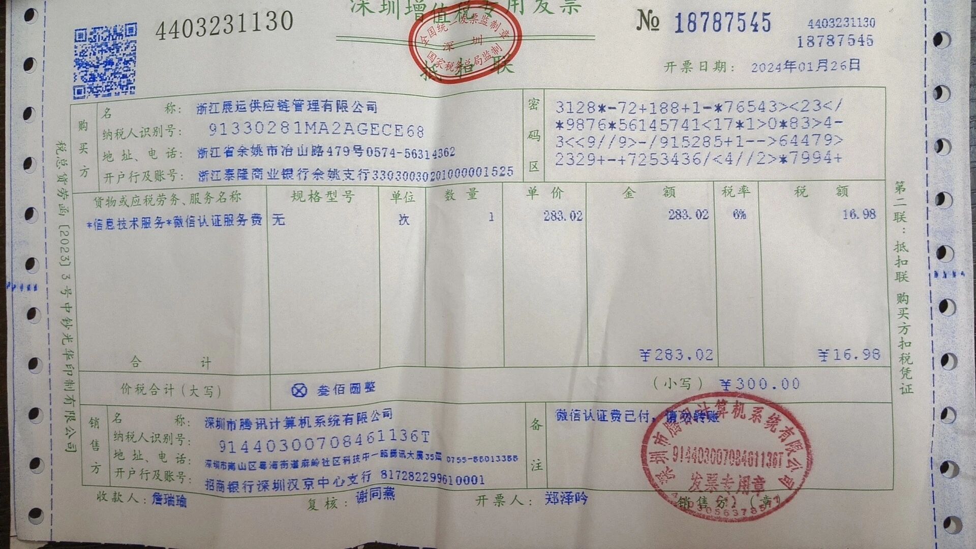 已经在腾讯中年审认证了,收到了增值税发票,为什么要重复认证,最好来电说明下18358239901