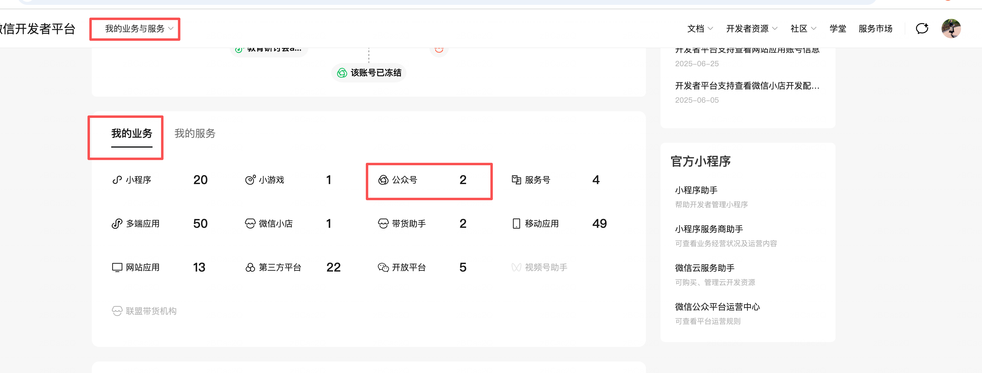 2、我的业务 - 公众号,如下截图: