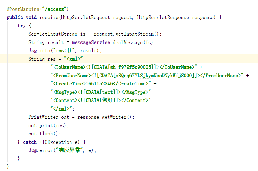 返回给微信的格式是这样的字符串,和文档上对照是正确的,但公众号不能回复