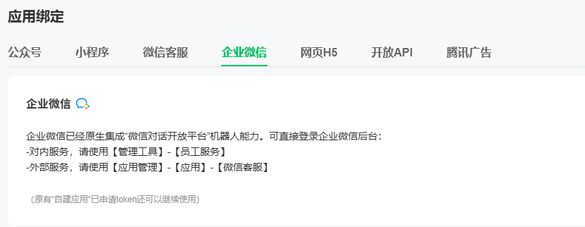 您好 企业微信已经原生集成“微信对话开放平台”机器人能力,推荐您直接登录企业微信后台使用。