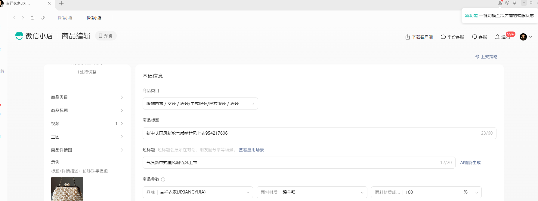 需将客户类目切换为新版四级类目,店铺名称: 吉祥衣家JIXIANGYIJIA