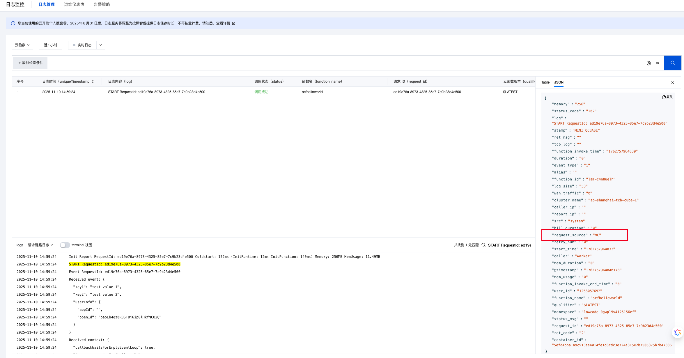 可以查下对应的云函数调用日志,有个request_source字段
