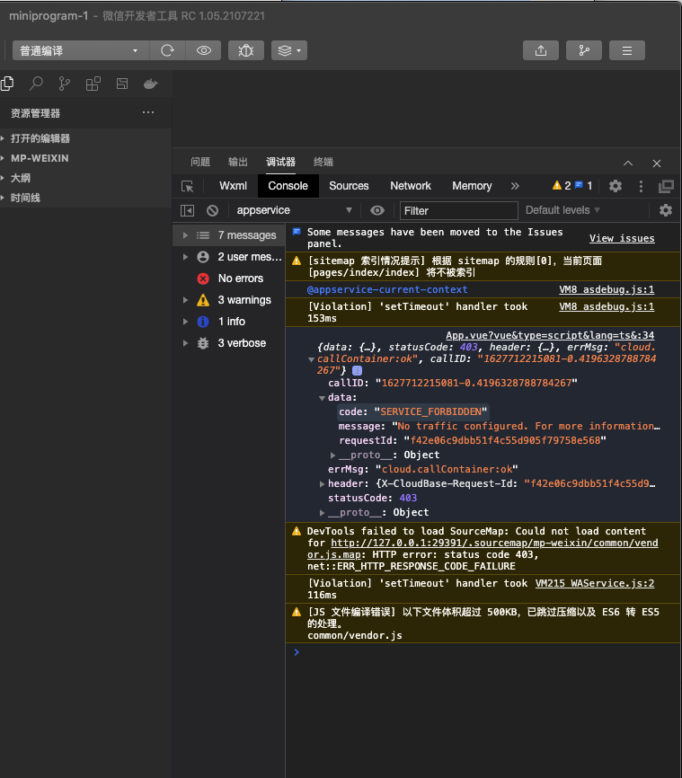 使用官网node demo在微信云托管新建的服务,开启了允许公网访问,通过公网域名访问、在小程序中和在web中访问,这三种方式都返回错误码