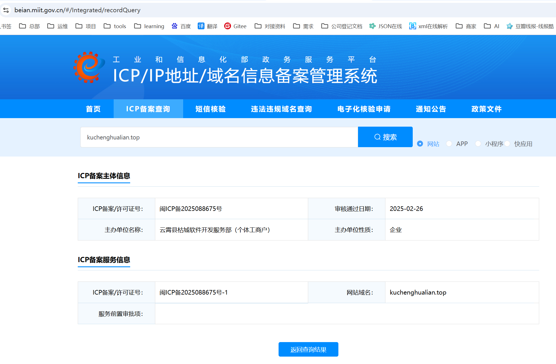 正常运行的网站和域名,已备案,主办单位为云霄县枯城软件开发服务部(个体工商户)。请核实并恢复,辛苦帮忙看下页面