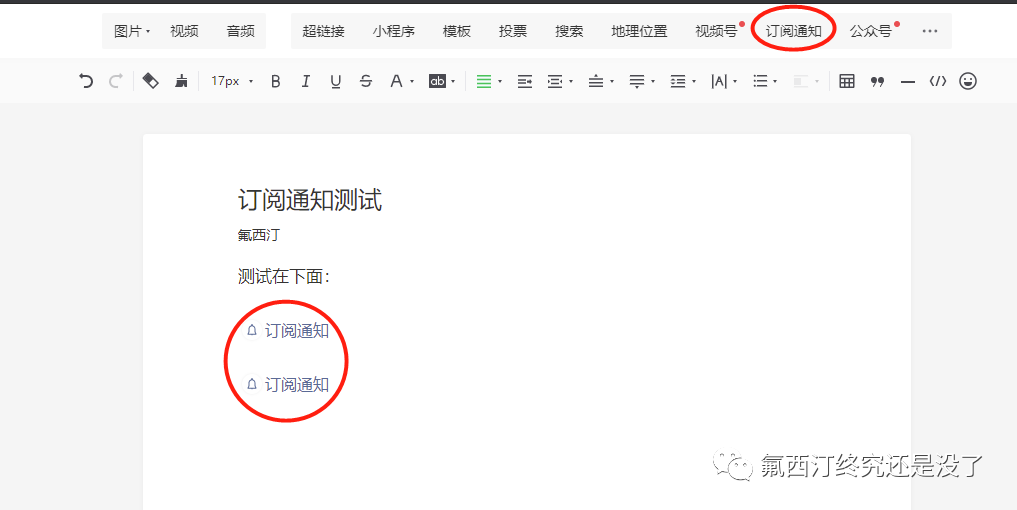 每篇文章最多插入10个订阅通知组件,每个组件最多包含5条通知,每个组件不能同时包含一次性订阅和长期订阅,文章推送后用户才可点击订阅。