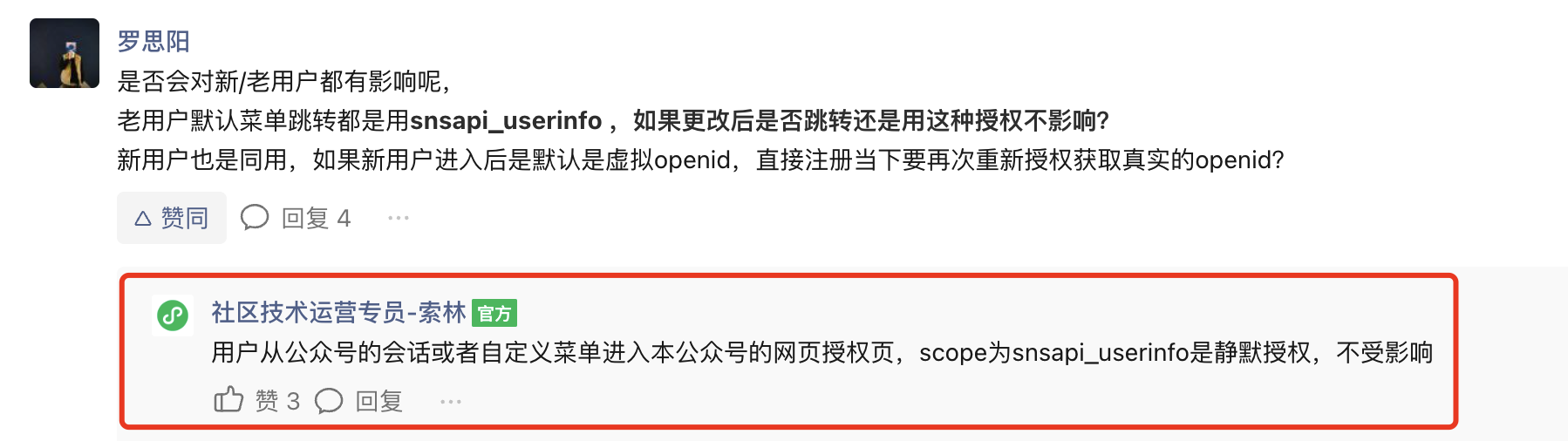 2、社区技术运营专员-索林 在回答公告评论中回复道“用户从公众号的会话或者自定义菜单进入本公众号的网页授权页,scope为snsapi_userinfo是静默授权,不受影响”,我的公众号使用场景全部都是公众号内打开网页且是snsapi_userinfo授权,即符合snsapi_userinfo静默授权的场景,按理说应该属于索林提到的“不受影响”的范围,但是如果用户从微信pc,微信mac版内的公众号菜单点开网页,snsapi_userinfo就会提示授权,没有静默授权,这种情况会不会触发微信识别是“强制登录”从而进入快照页面逻辑?