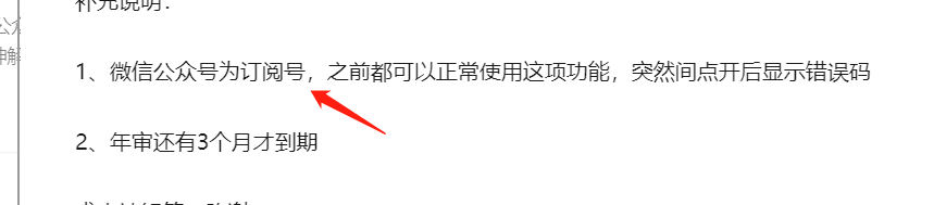 1、微信公众号为订阅号,之前都可以正常使用这项功能,突然间点开后显示错误码