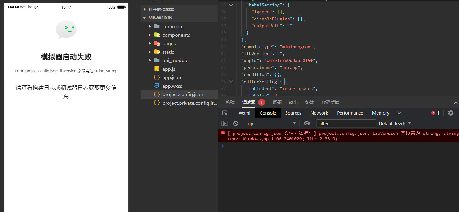 报错信息为[ project.config.json 文件内容错误] project.config.json: libVersion 字段需为 string,之前是好的 就更新了下之后就报了这个错误,有没有大佬帮忙看下 调整基础库版本还是报这个错