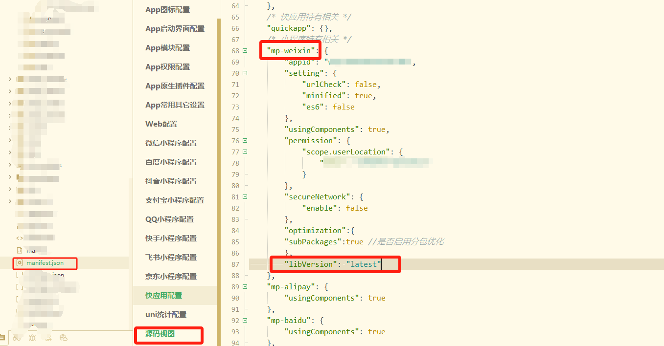 如图所示,在manifest文件的mp-weixin中添加 "libVersion": "latest" 即可