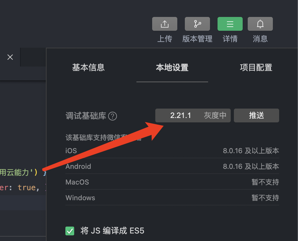 原因是 调试基础库 版本太低,切换到较高版本就好了