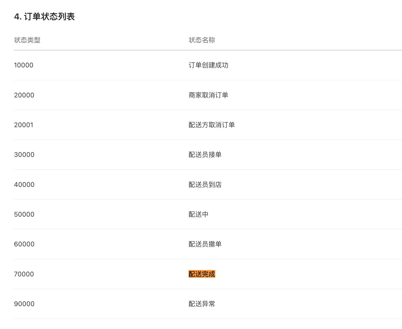 2、达达线下联系门店,将货物送回门店,此时单据状态:配送完成 70000