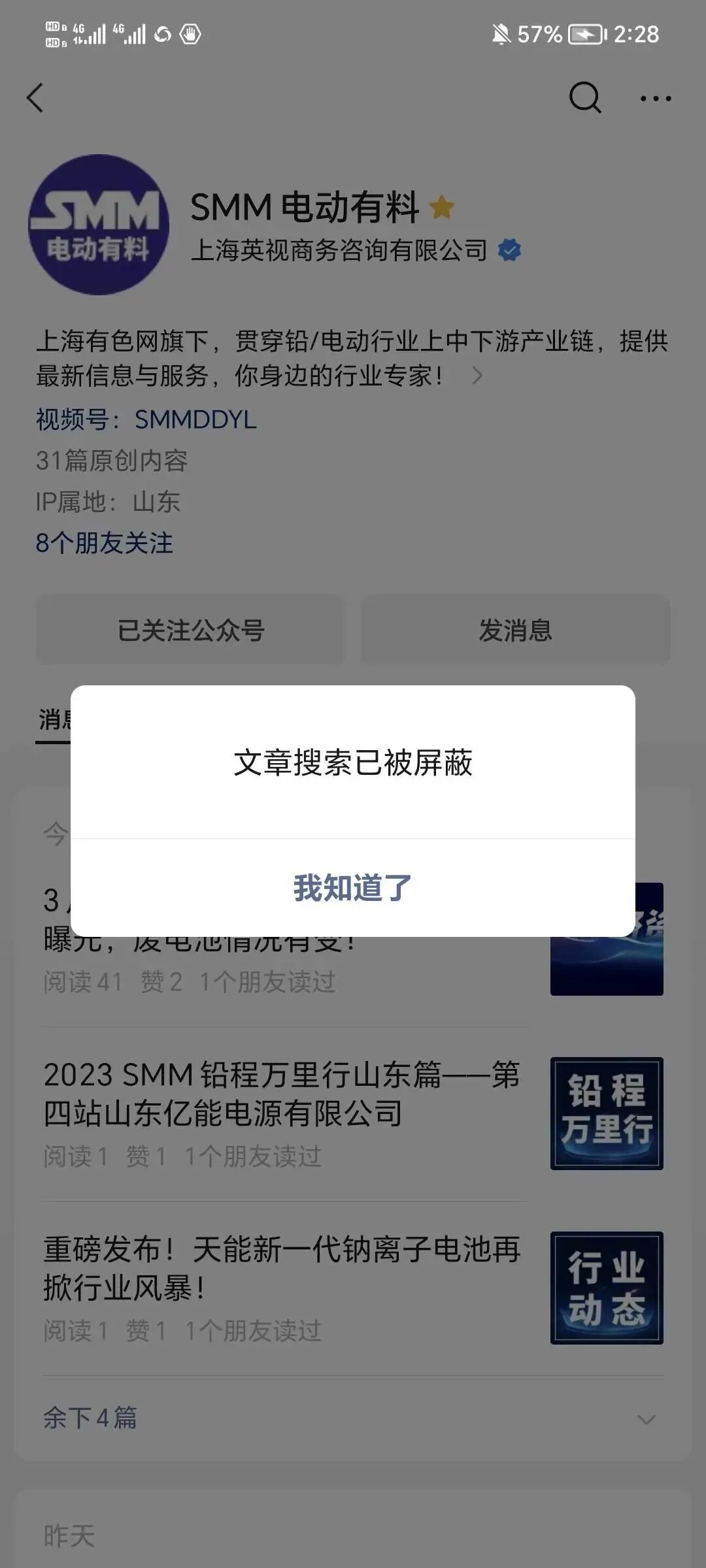 不知道什么原因,今天下午想再公众号内搜索公众号文章的时候,显示“文章搜索已被屏蔽”,去搜一搜也搜索不到文章,这边新号刚建立不久,没有违规啊,是什么问题?