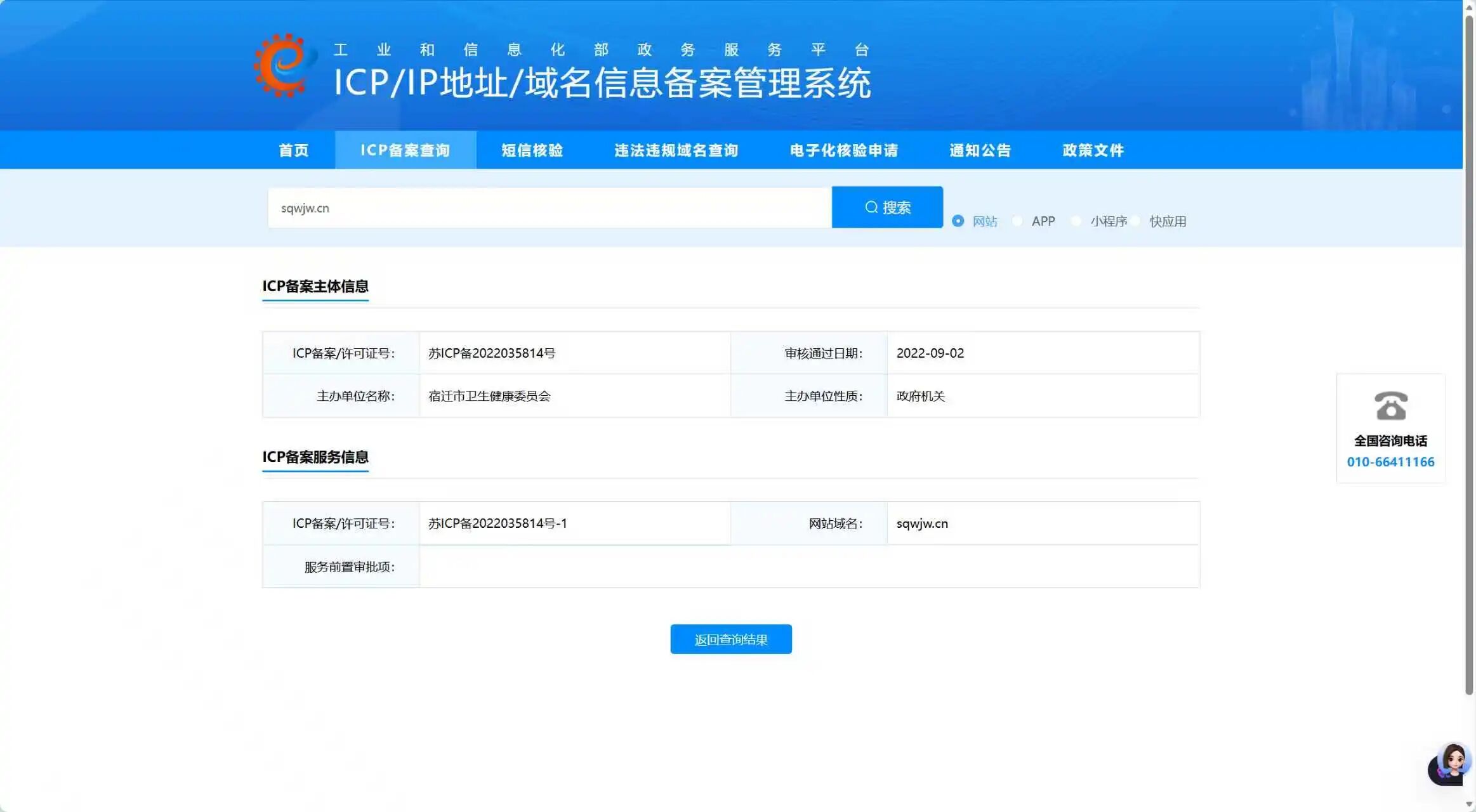 域名 sqwjw.cn 为宿迁市卫生健康委员会网站,已备案(苏ICP备2022035814号)。目前通过微信访问时,会出现“如需浏览,请长按网址复制后使用浏览器访问”的提示。