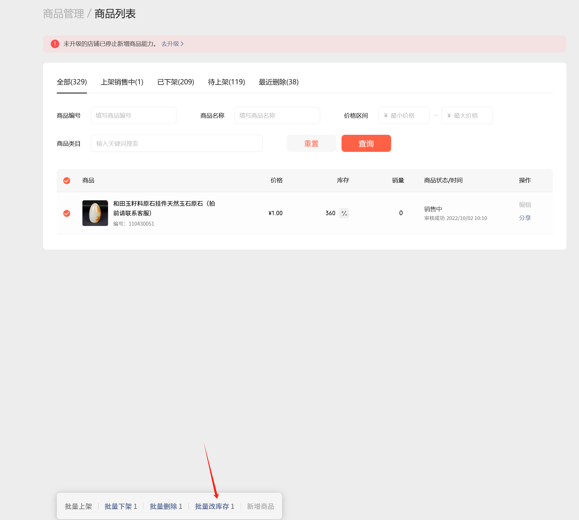 提醒各位,11.4大限马上到,之前删除、下架的商品今后还有可能卖的话,抓紧上架!可以库存设为0。