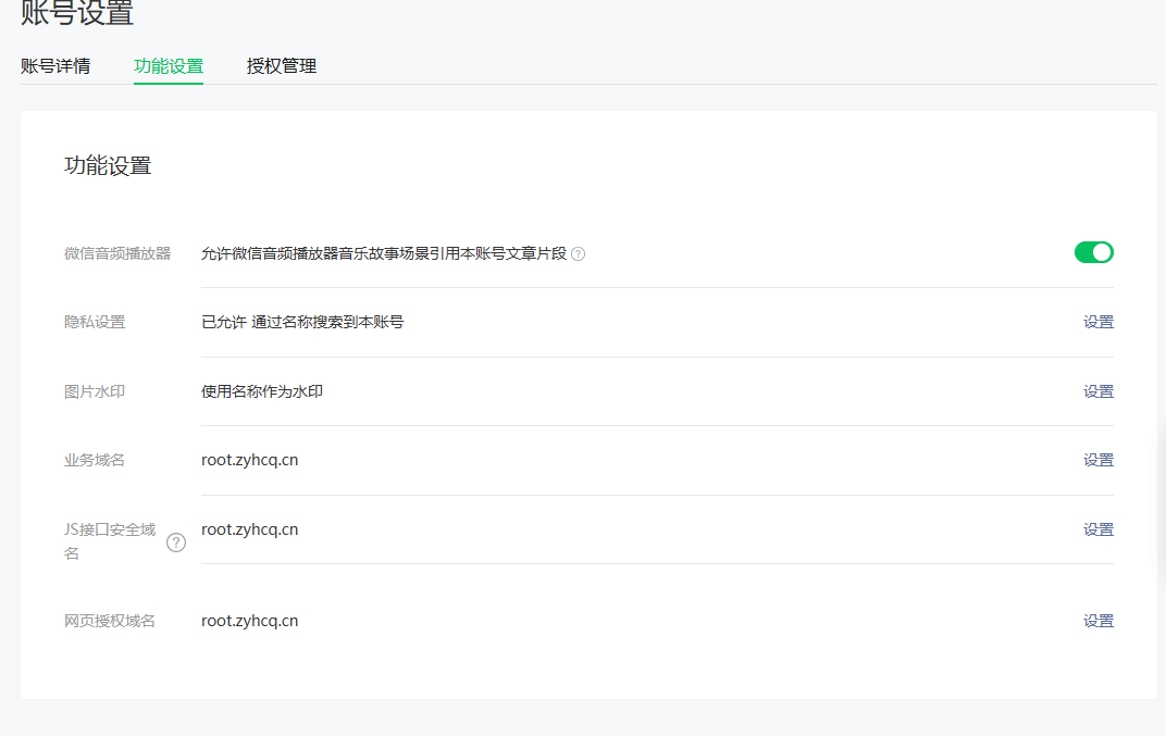 同时域名在微信公众号JS接口安全域名也完成了绑定