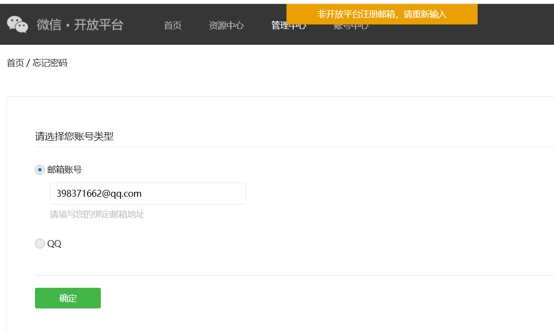 你好,提示邮箱未注册微信开放平台账号,被占用,即被其他平台自己注册使用,无法登陆、不存在找回。同一个邮箱只能绑定微信产品的一种账号,微信关注“公众平台安全助手”请开发者自行查询账号绑定对应平台信息。