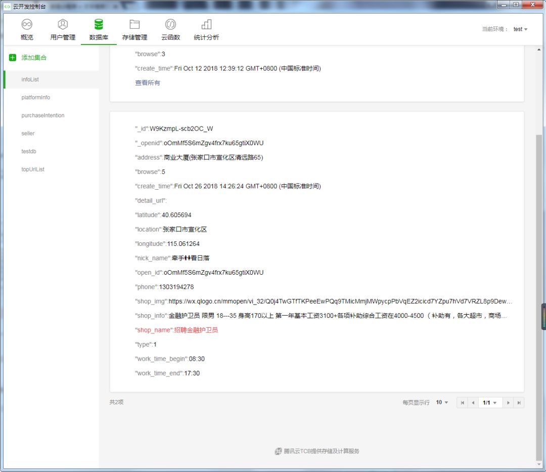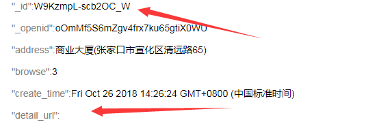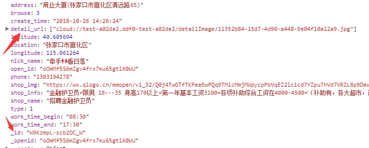 这是客户端查询出的记录,下面附上云开发服务端的记录,请注意_id字段是一致的,但是detail_url字段不一致。