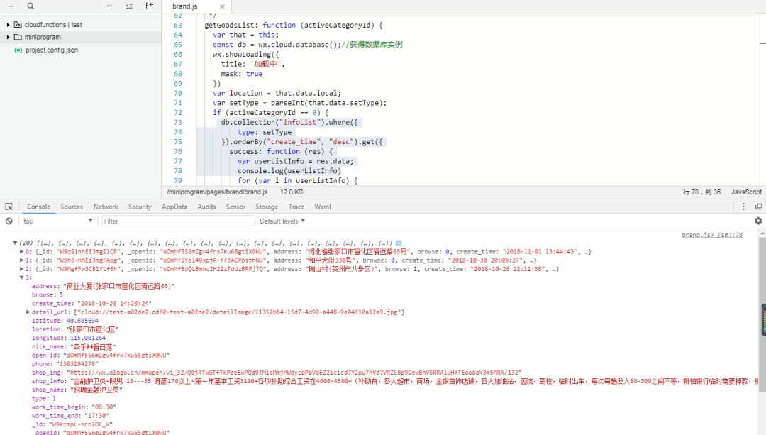 这是小程序端的查询语句,查询到记录就打印出来了,证明没有修改。