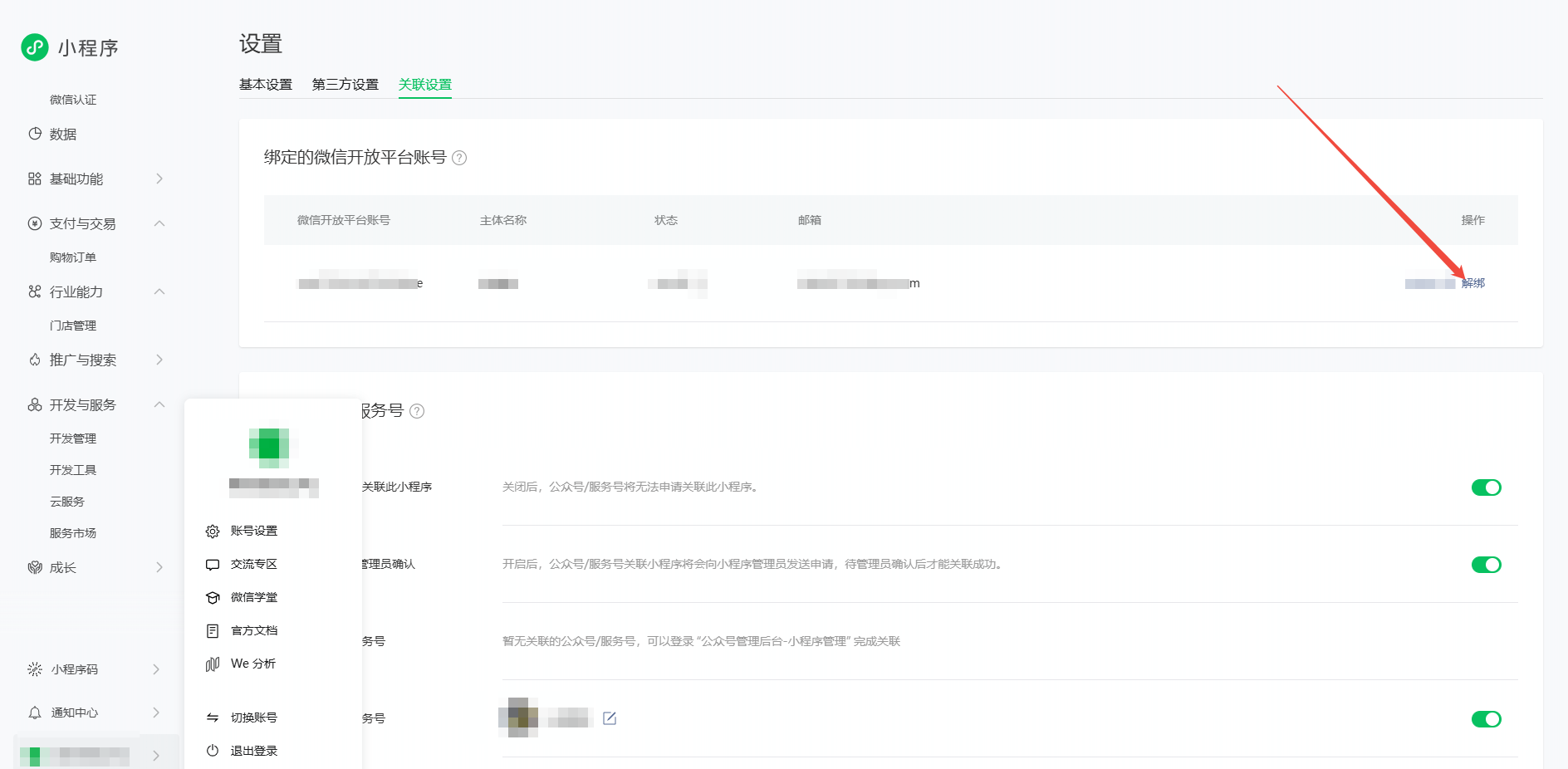 若是指小程序绑定在open账号下,需要换绑open账号,需要将open账号A登录到open平台(https://open.weixin.qq.com/)解除绑定,再将open账号B登录open平台操作重新绑定小程序