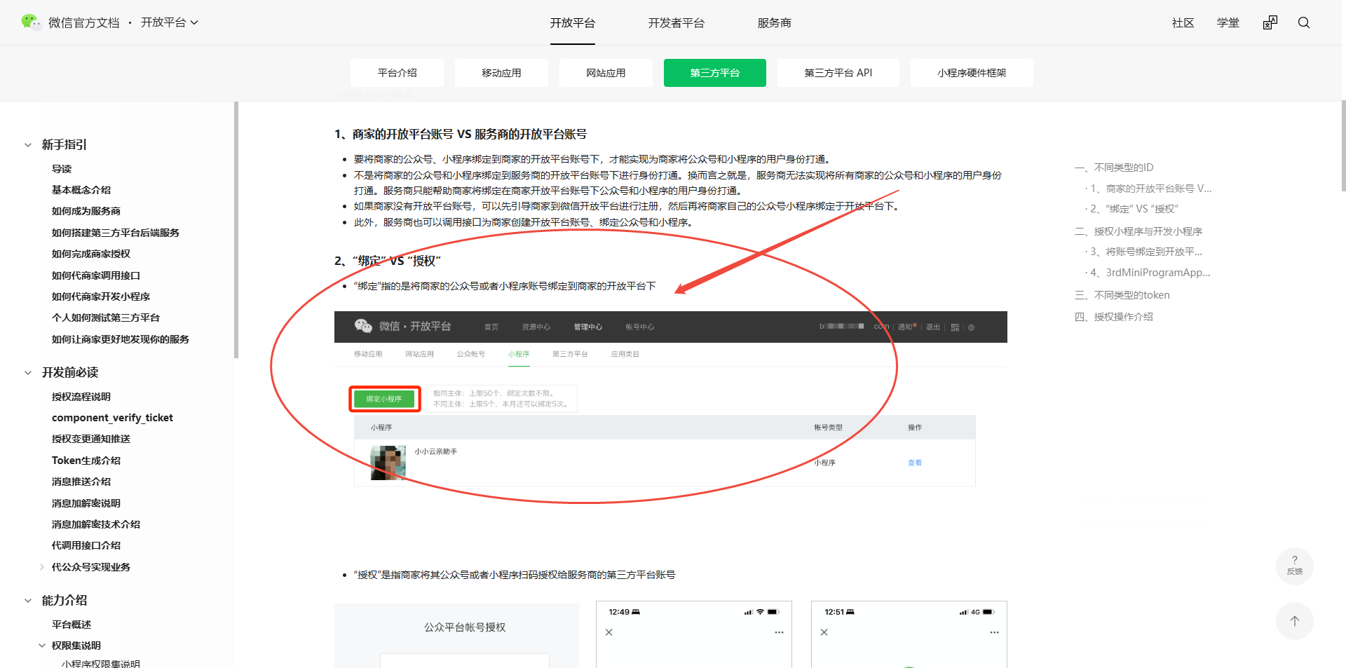 2、https://developers.weixin.qq.com/doc/oplatform/Third-party_Platforms/2.0/getting_started/terminology_introduce.html#_2%E3%80%81%E2%80%9C%E7%BB%91%E5%AE%9A%E2%80%9D-VS-%E2%80%9C%E6%8E%88%E6%9D%83%E2%80%9D